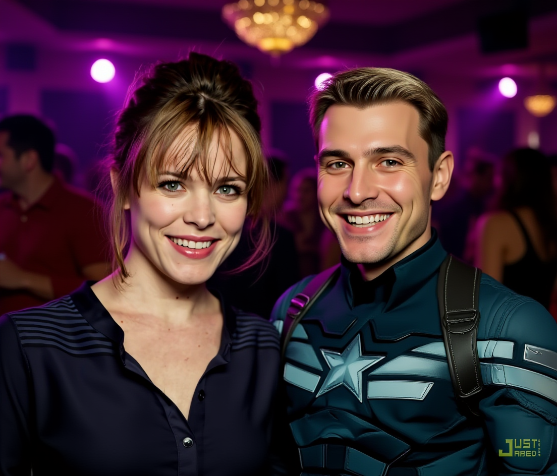 close-up photo of two people together at a party, friendly and realistic,