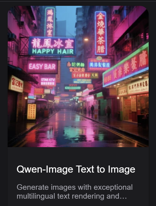 ComfyUI 좌측 상단 Workflow > Browse Templates > Qwen-Image Text to Image